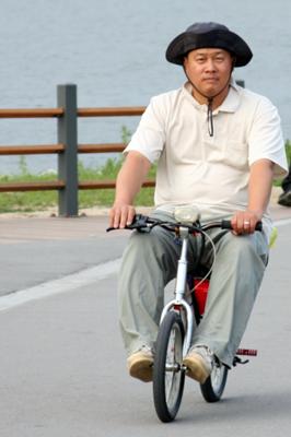 As I was walking along, I saw this guy on a small motorized bike and had to get a photo.