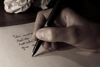 It's my sister's hand and the thing written there are the first verses of Romance Del Enamorado Y La Muerte.